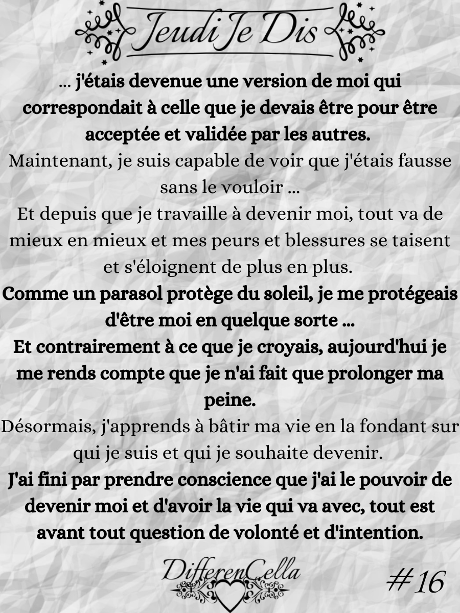 Et j’ai surtout le droit à l’erreur car sans lui, il n’y a pas de pardon possible, et je refuse de sombrer de nouveau dans la culpabilité. Je préfère continuer d’apprendre à me connaître et à m’aimer, surtout que je sais que j’ai encore d’autres trésors à découvrir, autant en moi que dans ce monde.