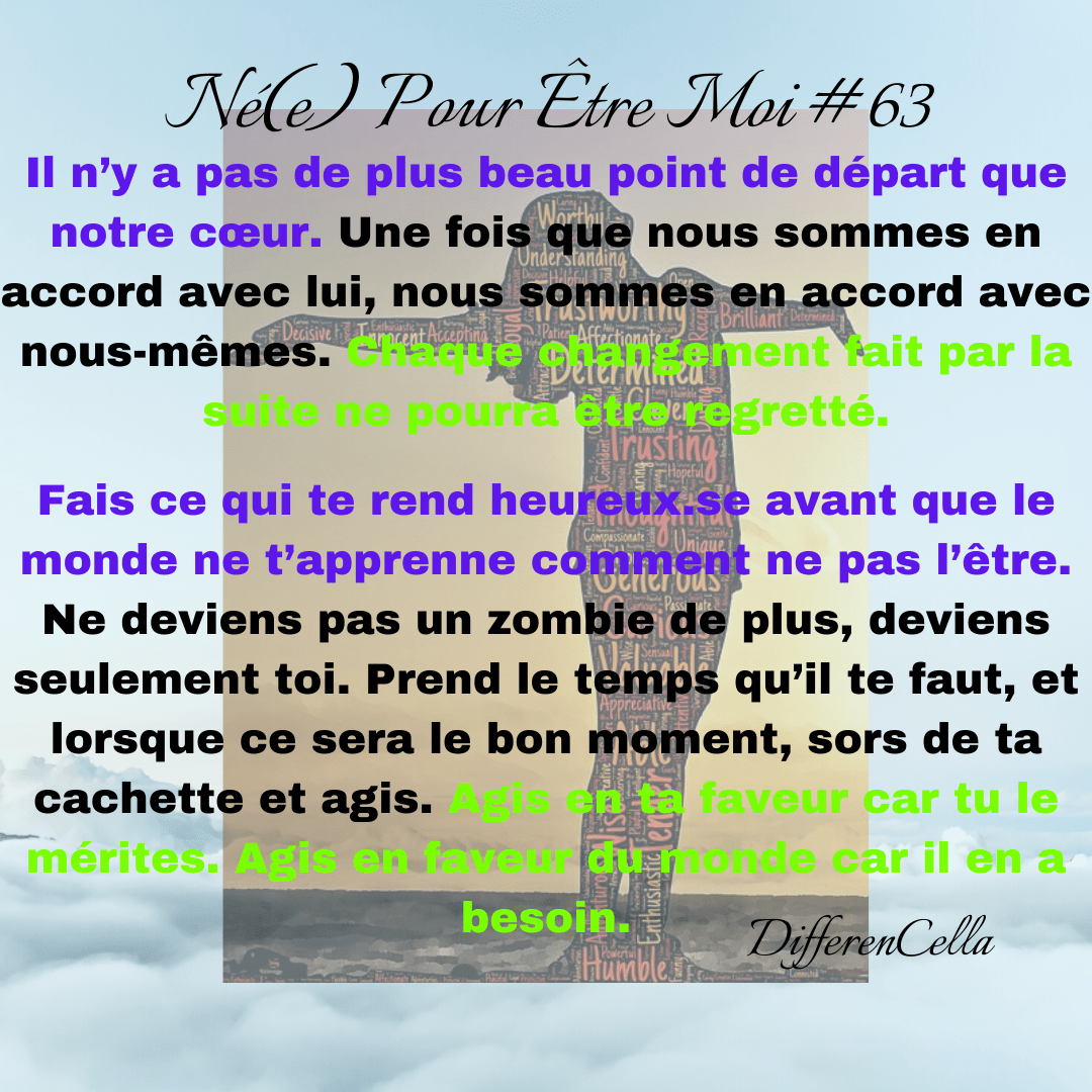 Ces phrases soulignent l’importance de nous remettre en question. Car, lorsque nous sommes heureux.ses, nous ne questionnons pas notre bonheur. Mais, lorsque nous sommes envahi.e.s par le malheur, nous finissons par nous questionner. Nous pouvons alors prendre conscience que notre vie telle qu’elle est ne nous correspond plus.