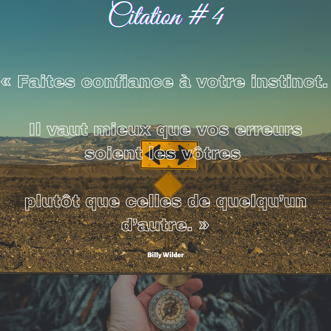 « Faites confiance à votre instinct. Il vaut mieux que vos erreurs soient les vôtres plutôt que celles de quelqu’un d’autre. »