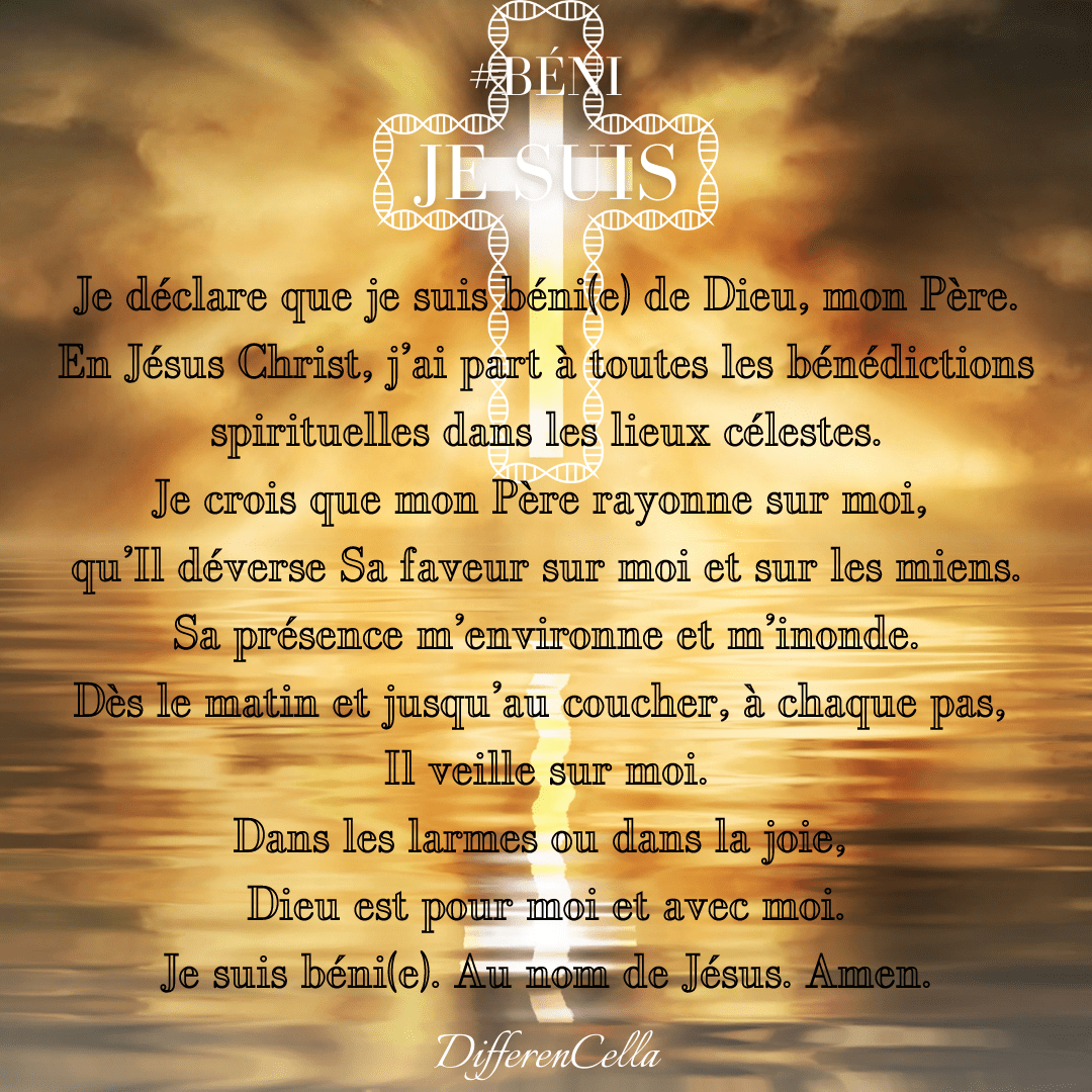 Je suis béni(e). Au nom de Jésus. Amen.