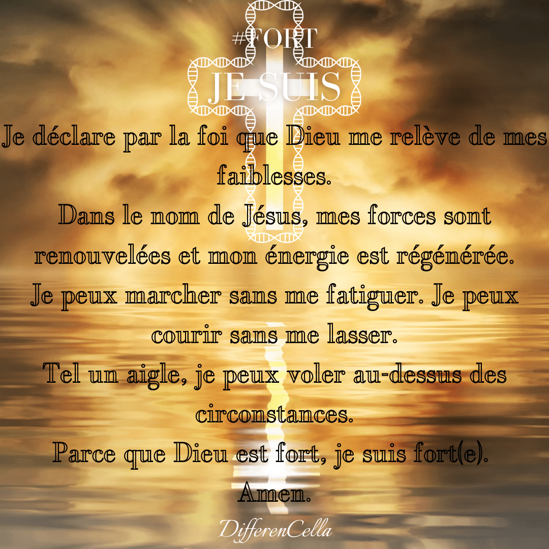 Je déclare par la foi que Dieu me relève de mes faiblesses.