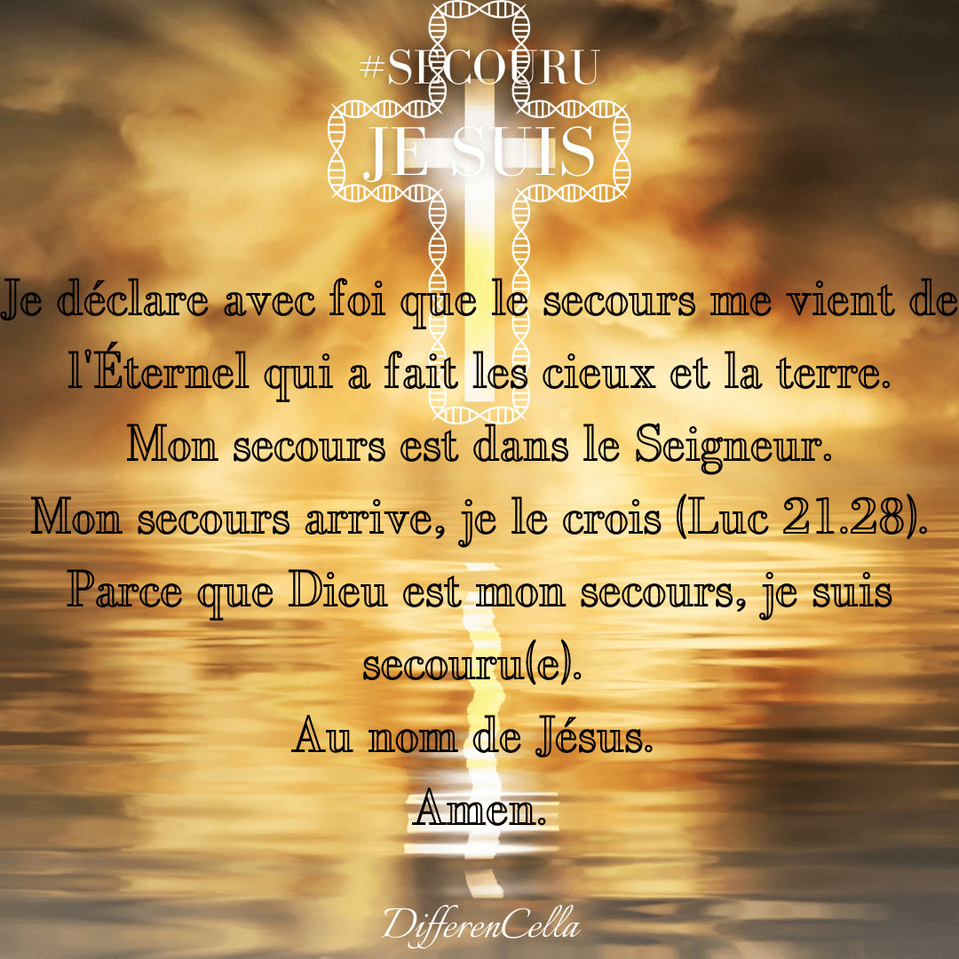 Je déclare avec foi que le secours me vient de l’Éternel qui a fait les cieux et la terre.
