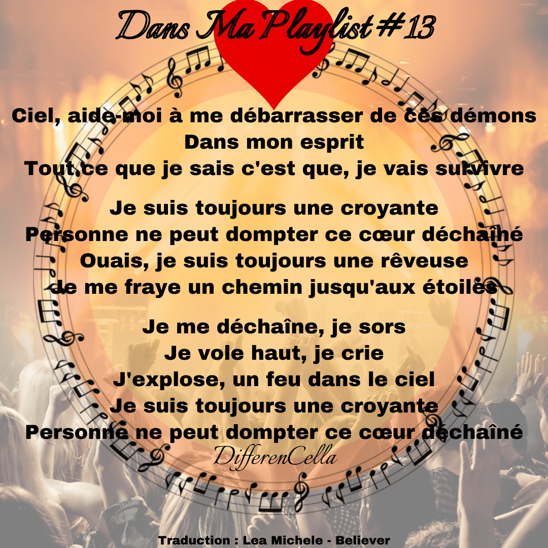 J’avais écrit ces vers en écoutant la chanson Believer de Lea Michele que j’ai choisi pour mon article « Dans Ma Playlist #13 ».