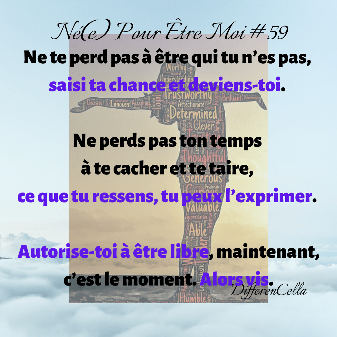 Qu’importe la personne que je suis censée devenir, tout me guide vers cette future version de moi. Je sais désormais que quoiqu’il arrive, que ce soit de bonnes ou de mauvaises décisions ou expériences, tout est pour mon bien. Car, chacune de mes erreurs m’ont permis d’apprendre, de grandir et de corriger ce que je pensais savoir.