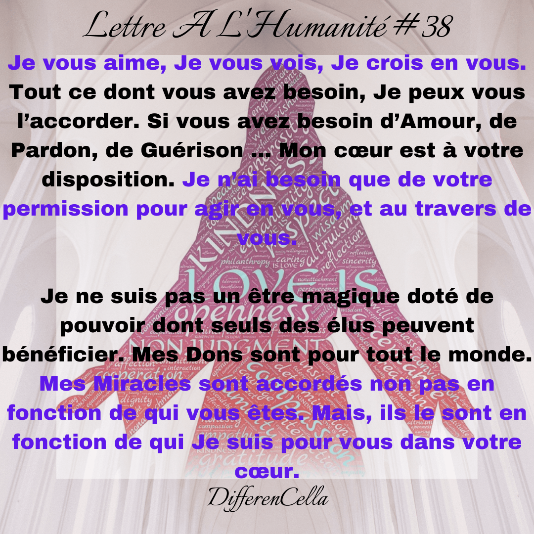 Certes, cette lettre s’adresse à toi. Mais, puisque Je sais que tu vas la publier, Je voudrais également passer un message à tous Mes Enfants.