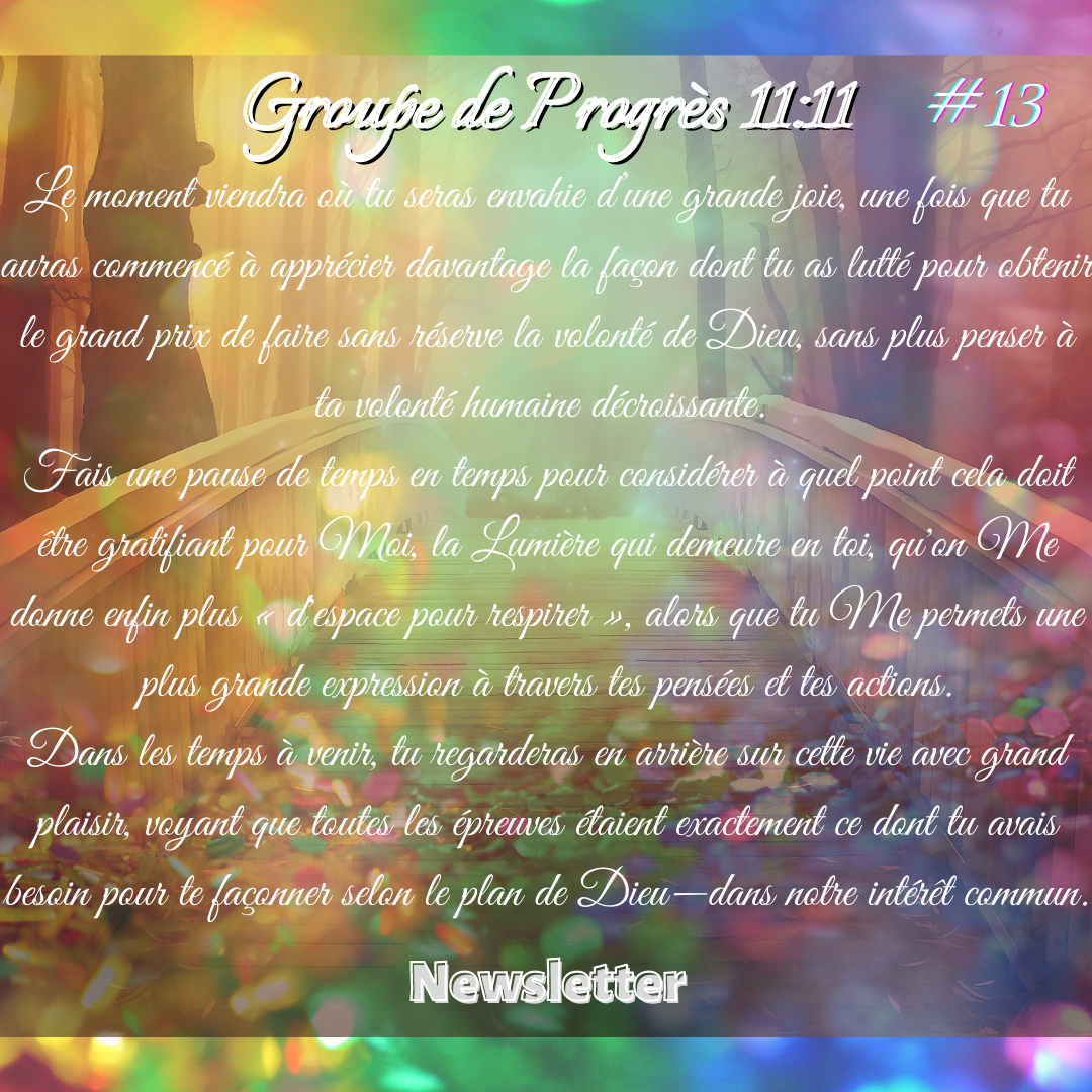 Fais une pause de temps en temps pour considérer à quel point cela doit être gratifiant pour Moi, la Lumière qui demeure en toi, qu’on Me donne enfin plus « d’espace pour respirer », alors que tu Me permets une plus grande expression à travers tes pensées et tes actions.