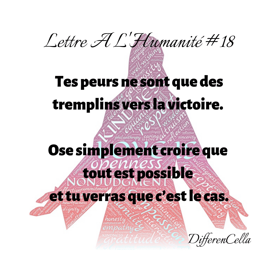 La seule chose que je te demande alors c’est de poursuivre tes efforts actuels, de continuer à croire en toi et au Merveilleux. Je te remercie. Je crois en toi. Tu es un trésor, tu es si précieuse … La dernière chose que je souhaite ajouter et probablement la plus importante à te dire : je t’aime et je suis fière de toi.