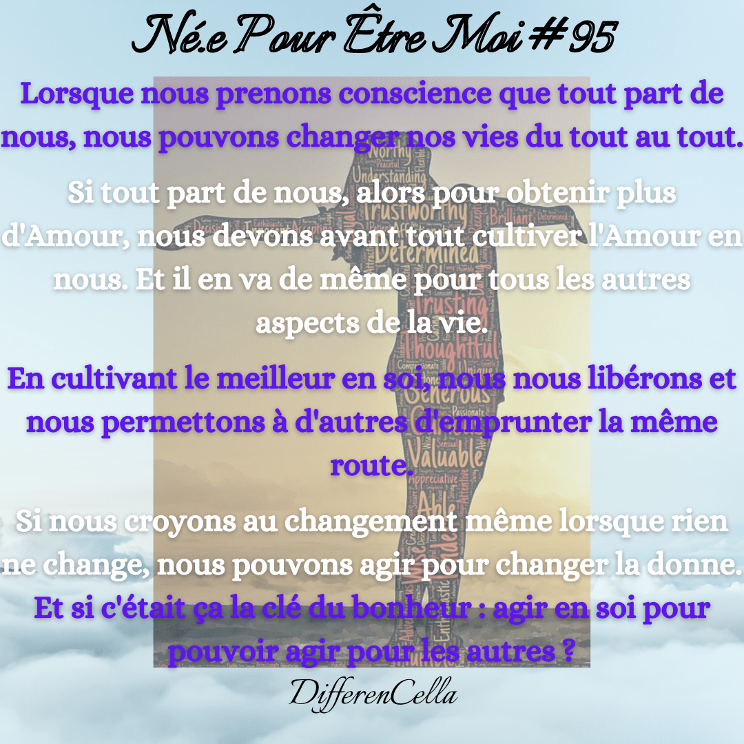Si nous croyons au changement même lorsque rien ne change, nous pouvons agir pour changer la donne. Et si c’était ça la clé du bonheur : agir en soi pour pouvoir agir pour les autres ?